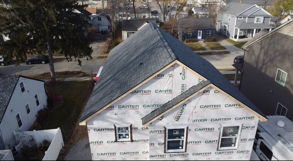 Berkley, MI New Construction Installed IKO Cambridge shingles in Charcoal